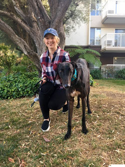 Jenny and Scott really wanted a cute cat safe greyhound to keep their Greyhound Shane a happy boy. Here comes Bindy Bo all the way from Australia just