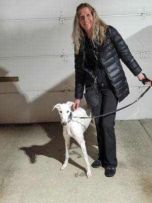 Debra, one of our Greyt foster volunteers is on her way home to Lodi with her new greyhound Barb, now Kira.