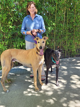 Darby and Clark thought Goose needed a playmate. One greyhound is never enough. Twitch, now Bowie, is home in Nevada City.