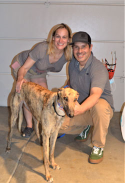 Alyssa and Kyle knew it was time to give another ex-racer a safe and loving home. They drove down from Portland, they are previous Golden State Adopters,