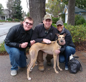 Cameron and Lia are on their way home to Novato with their first greyhound Lily.