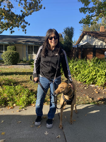 Michelle is standing in for Jake who just adopted Kahn, now Romeo Becks. All are home in South San Francisco getting used to the hustle and bustle of the City.